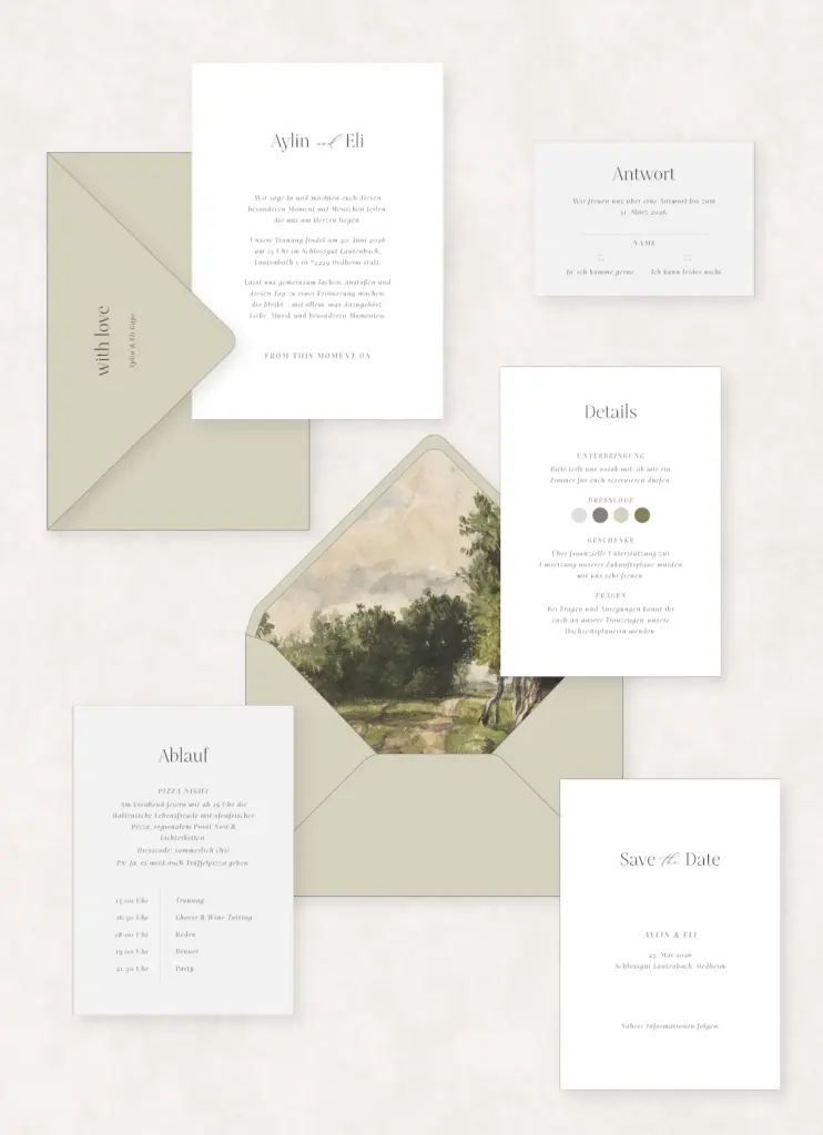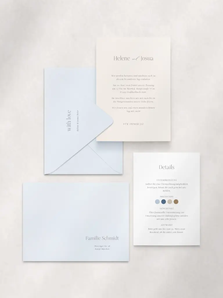 Versand: Ich empfehle meinen Paaren 6 Monate vor der Hochzeit die Einladung zu versenden.